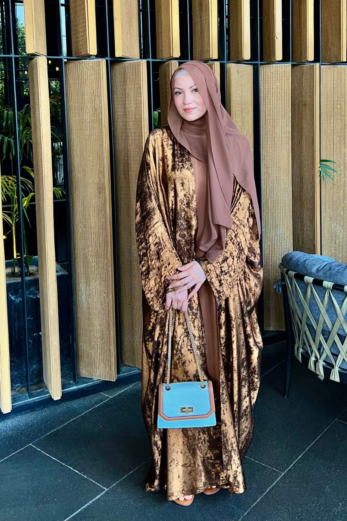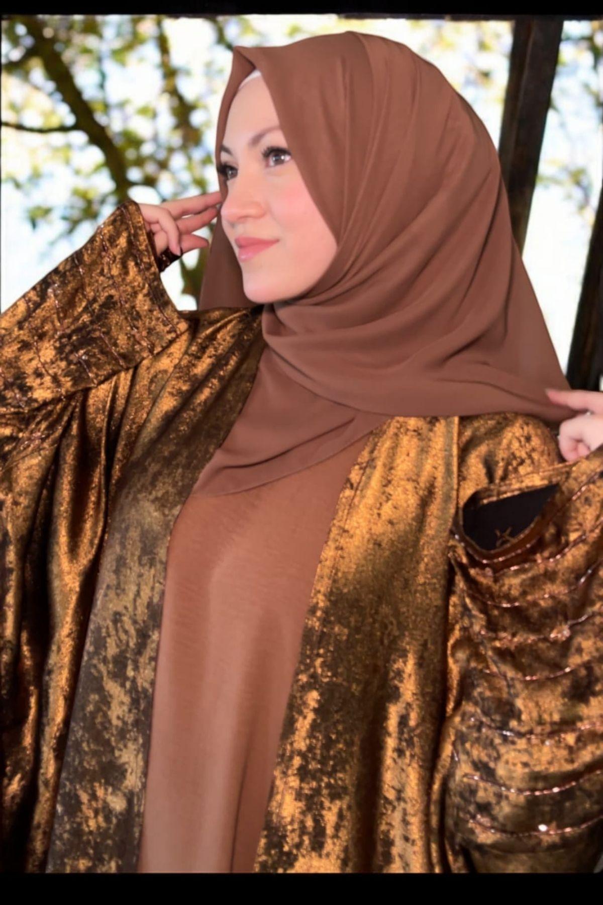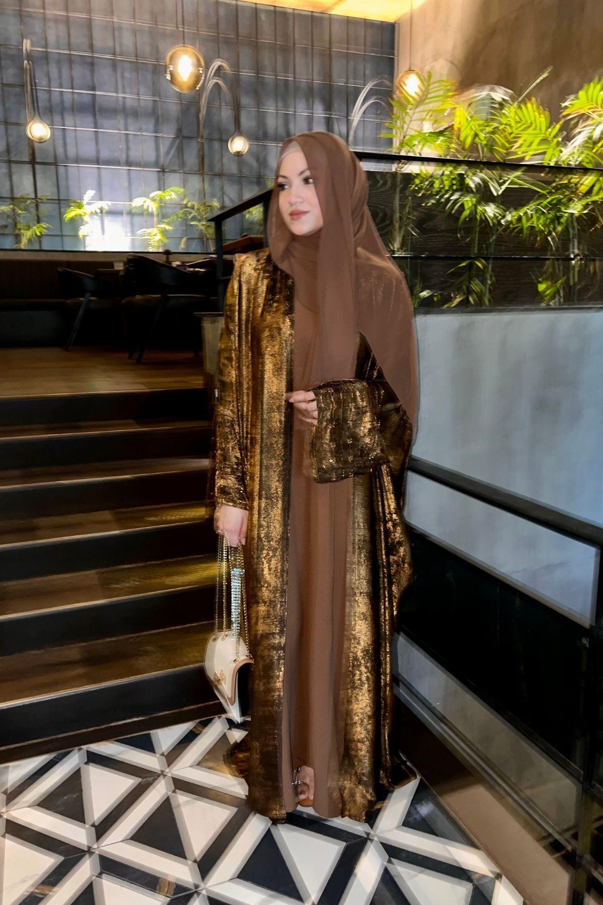 A perfectly coordinated chiffon hijab completes the look, giving the Golden Sand set a beautifully polished, cohesive finish.