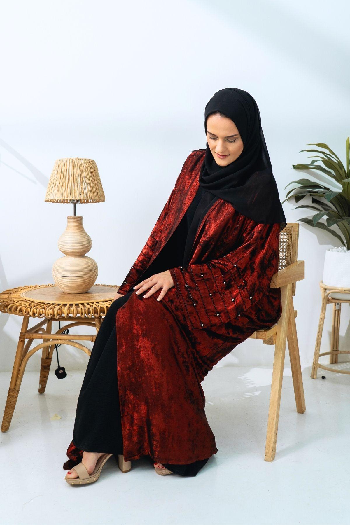 1 review for Dazzle Open Abaya – Ruby