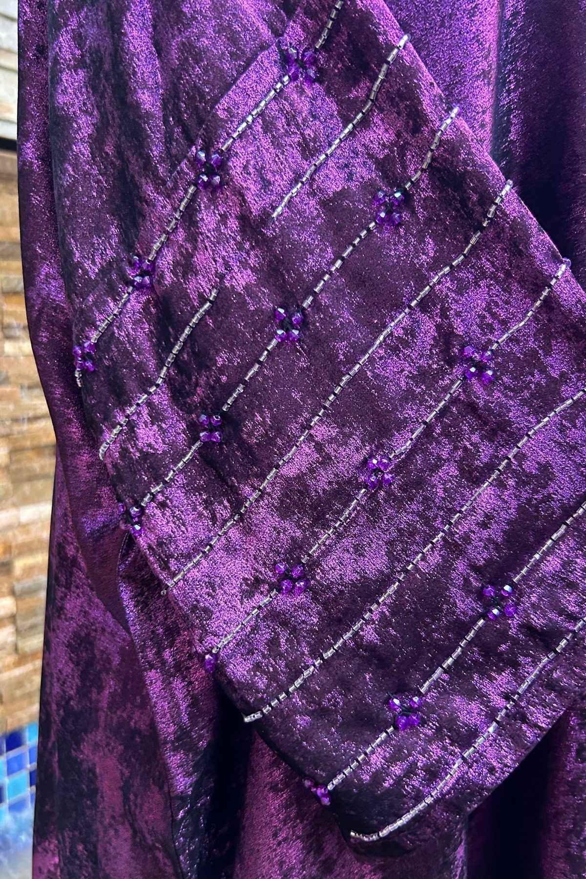 The Twilight Plum the richest and most regal shade from Dazzle Collection. It is designed for women who love deep tones with sophisticated shine. The gentle shimmer of Korean foil adds a polished luxurious sheen while remaining incredibly light, airy, and comfortable and never heavy like velvet. luminous effect.
