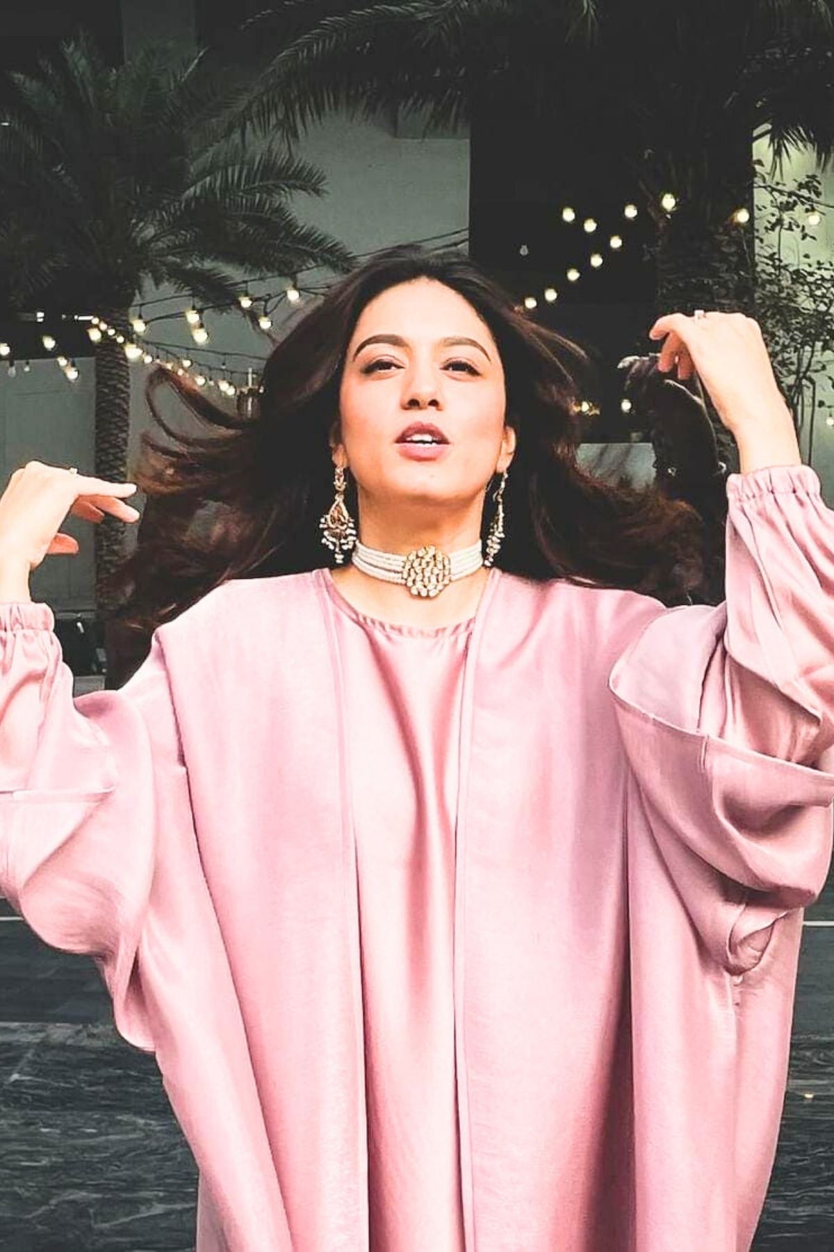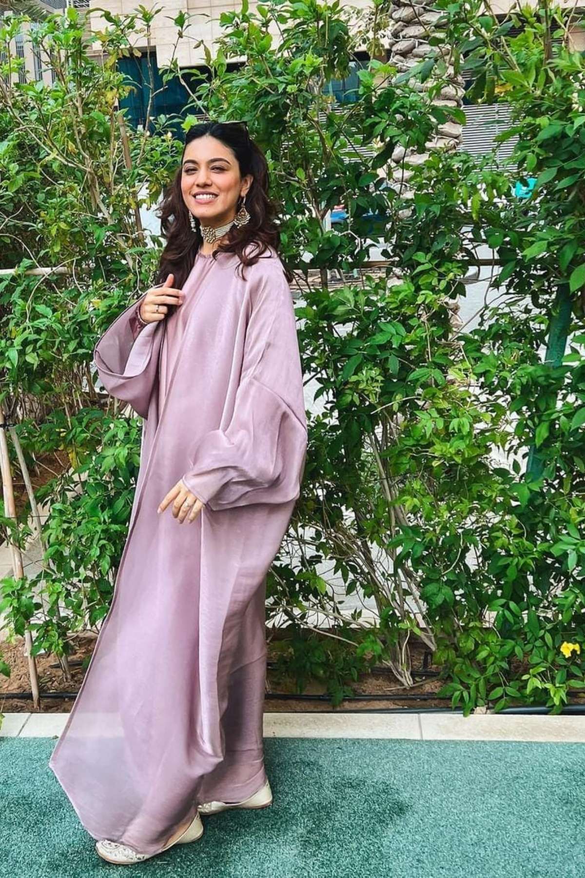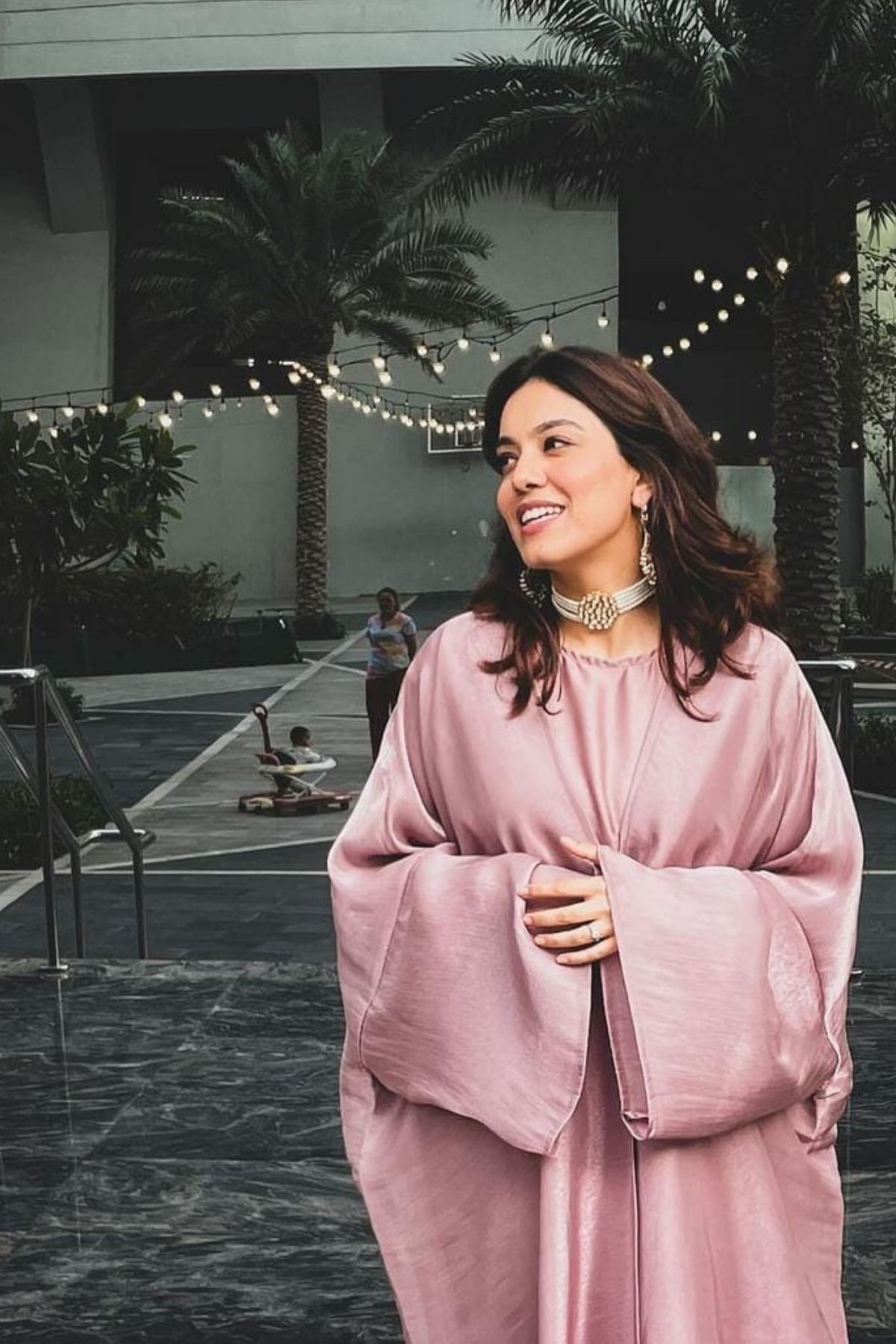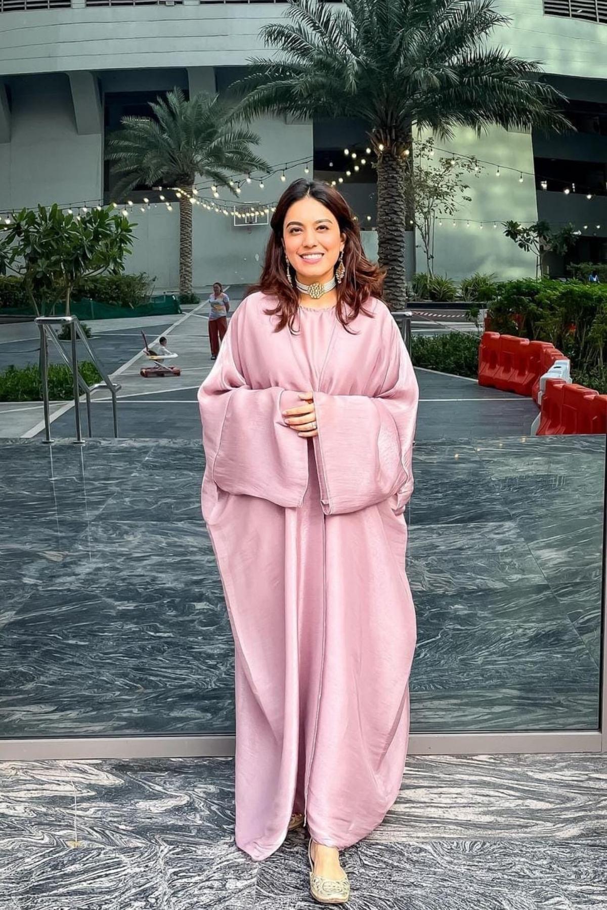 Perfect for brunches, daytime gatherings, Eid celebrations, or intimate events. Style it with pearls, soft gold jewelry, or nude heels to enhance its delicate tea-pink shimmer and create a fresh, feminine, and effortlessly elegant finish.